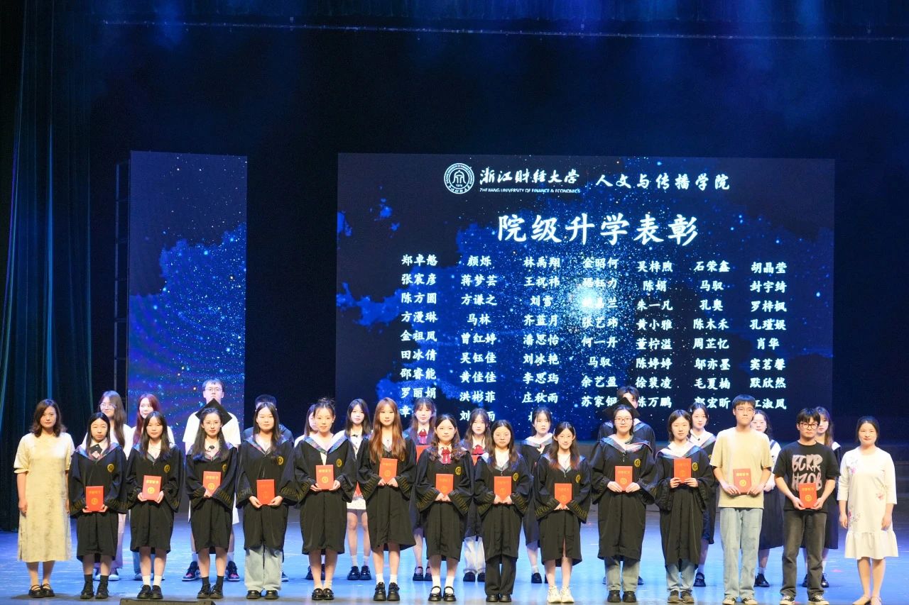 2024届毕业生们在入学至今始终积极进取,认真学习,展现着人文学子的卓越风采,公司13位同学被评为“省级优秀毕业生”,33位同学被评为“校级优秀毕业生”。同样,在历年毕业人数最多的2024年里,公司收到了众多毕业生们的佳音,共有43名员工考上国内外研究生,11名员工考上国家公务员和选调生。晚会为省级、校级以及院级升学优秀毕业生进行表彰并颁奖,希望毕业生们能够以此为新的开始,继续乘风破浪,扬帆起航,抵达梦想的彼岸!