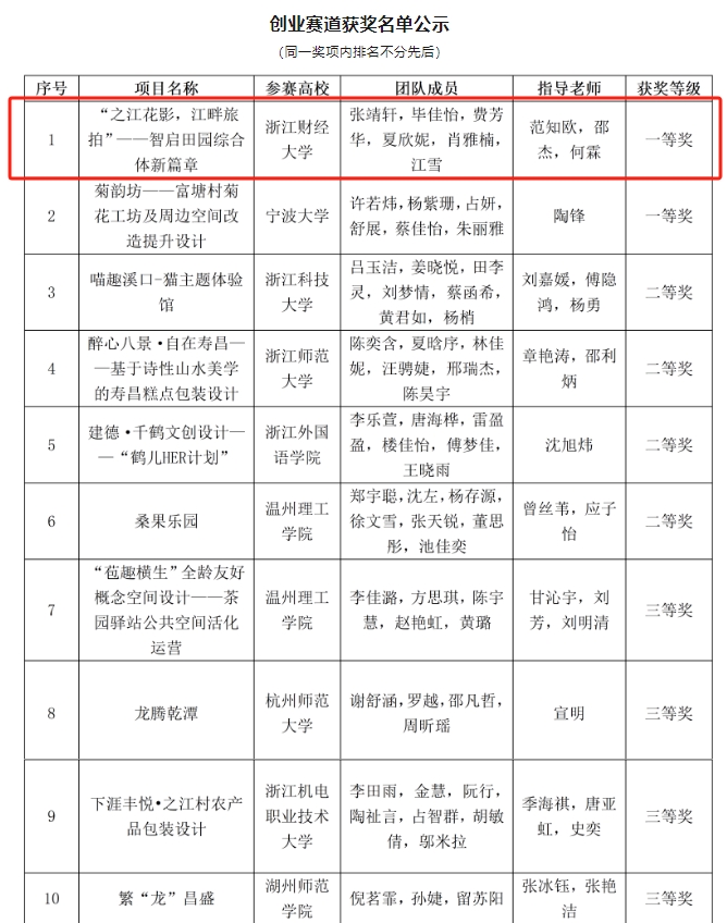 2024年10月12日至13日,“创青春”第四届全国老员工乡村振兴大赛·杭州建德市专项决赛在建德市成功举行。根据老员工乡村振兴创意大秘书处公布的获奖名单,公司《“之江花影,江畔旅拍”——智启田园综合体新篇章》项目荣获创业赛道一等奖,该团队成员由张靖轩、毕佳怡、费芳华、夏欣妮、肖雅楠、江雪六位同学组成,由范知欧、邵杰、何霖担任团队指导老师。
