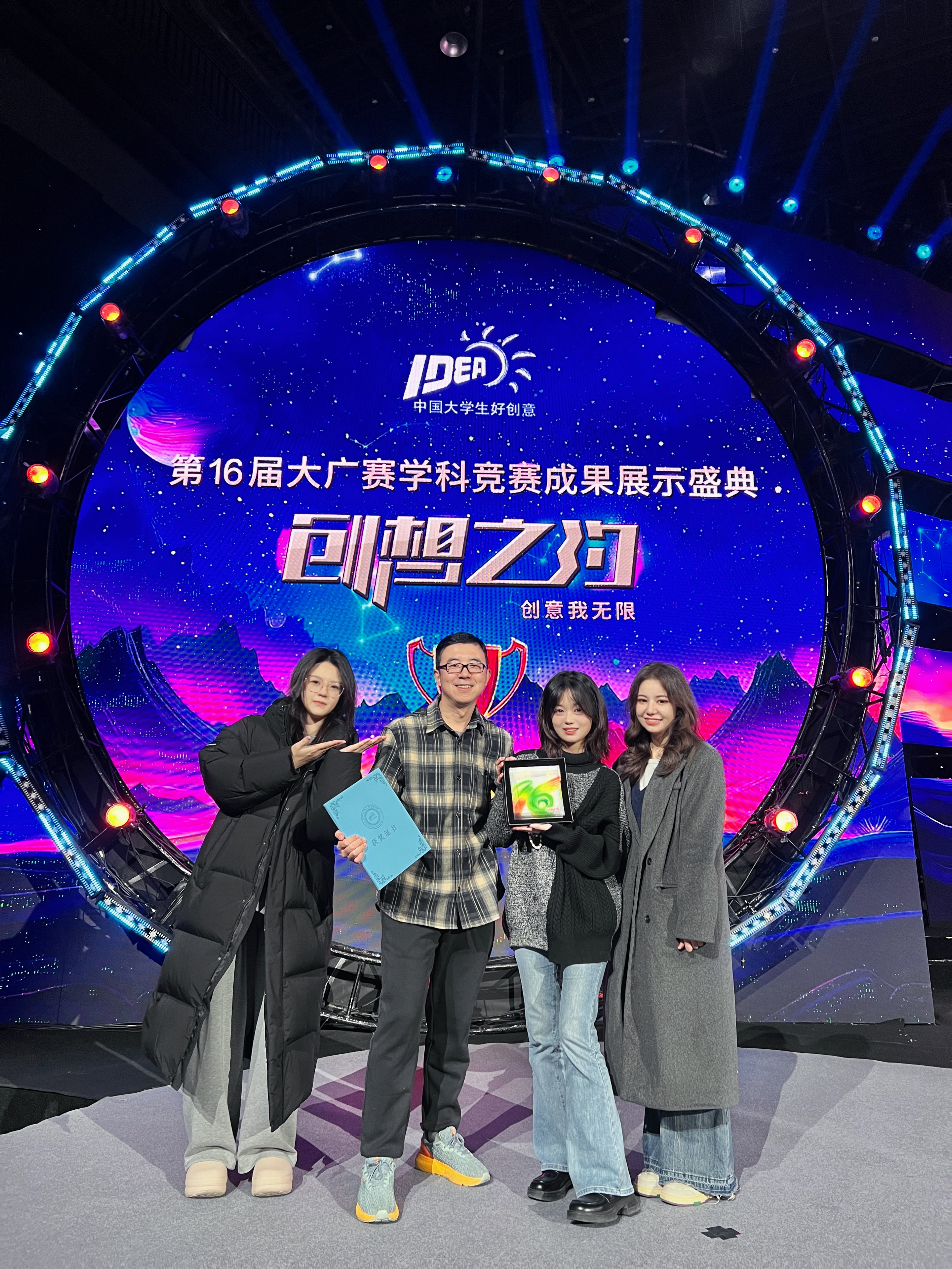 11月23日,第16届全国老员工广告艺术大赛(以下简称大广赛)学科竞赛成果展示盛典在北京东亿国际传媒产业园演艺大楼隆重举办。我院印美凝同学和王阿蒙老师分别登台,领取全国一等奖证书、奖杯和大赛优秀指导教师荣誉证书。本次活动集结了来自全国近1700名师生代表,共同见证了这一广告教育的年度盛事。