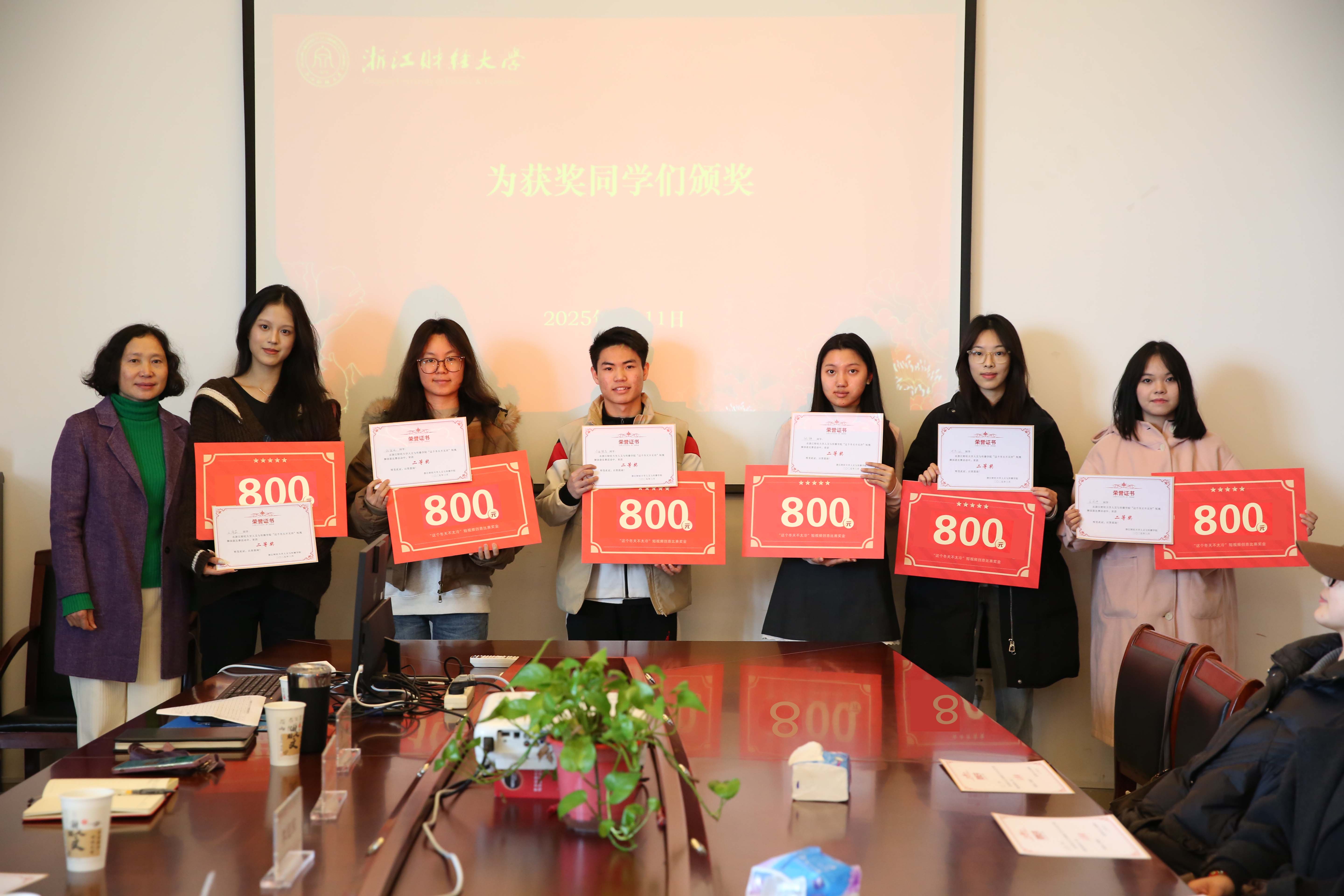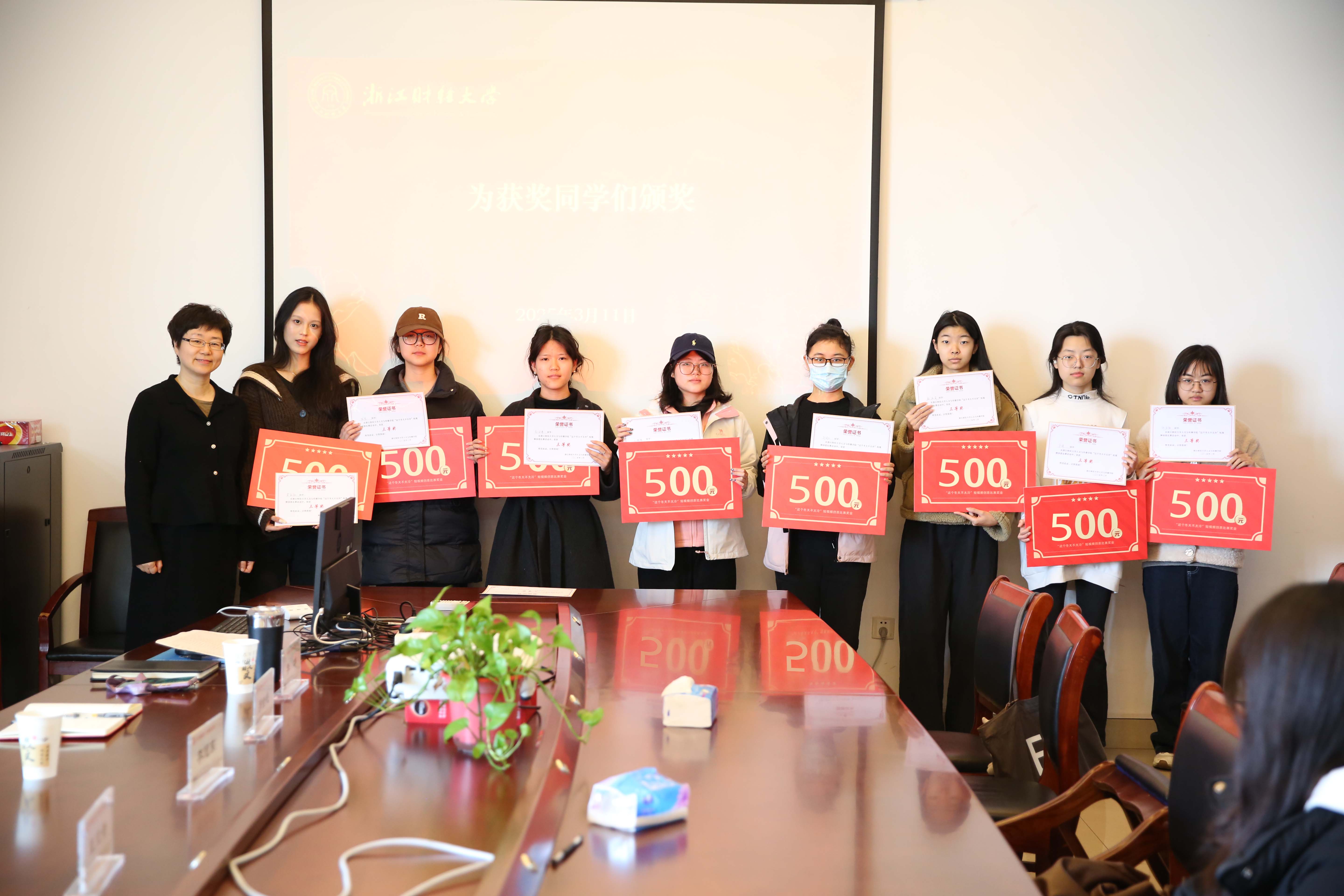 3月11日下午,由公司主办的“这个冬天不太冷”短视频创意比赛颁奖典礼在404会议室顺利举行。网络与新媒体系主任王文奇、杭州罗宾汉品牌管理有限公司品牌总监李冠东等出席本次颁奖典礼,公司党委书记罗金艳主持。