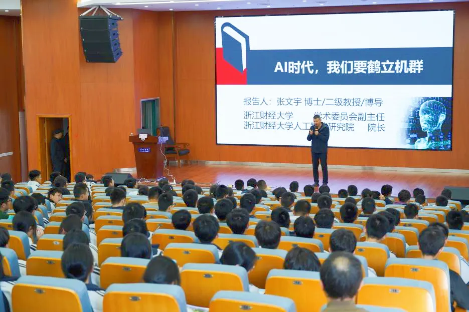 为精准对接中学需求,展现高校育人特色,吸引优质生源。3月18日,由公司党委副书记袁慧兰带队,校学工部副部长何露霞、文华创新公司党委副书记徐艳妍、校人工智能研究院经理、二级教授张文宇、辅导员陈琛、徐沛村共同参与,走进丽水中学开展招生宣传活动。活动当天,张文宇教授作《AI时代,我们要鹤立“机”群》主题讲座。