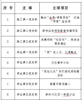 经过支部申报,公司党委评审和后期完善,《融合“金课+课程思政” 打造“两课”型支部》、《新传红色根脉数智传播项目》、《党建领航“创四优”,服务发展党旗红》、《“剧”说人文,忆情融史》、《闪光青年计划》、《“党性之光”系列短视频拍摄活动》、《笔墨书香润童心》、《新时代文艺·学涯沙龙》等8个项目获得立项支持,公司“一支部一品牌”党建布局不断得到夯实。下一步,各立项项目将按照创建活动的整体安排和制定的方案措施,认真组织实施,精心培育打造。