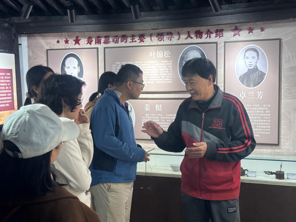 11月15日,抵达大慈岩镇,参观寿南暴动纪念馆。在庄严肃穆的展馆内,通过聆听老支书讲解、观看历史文物和珍贵图片,教师们深入了解了土地革命战争时期浙西地区风起云涌的革命斗争史,特别是寿昌南部农民武装暴动的英勇事迹,深刻感悟了革命先辈们坚定的理想信念和不怕牺牲、英勇奋斗的伟大精神。这堂生动的革命历史教育课,使大家接受了一次深刻的思想洗礼。