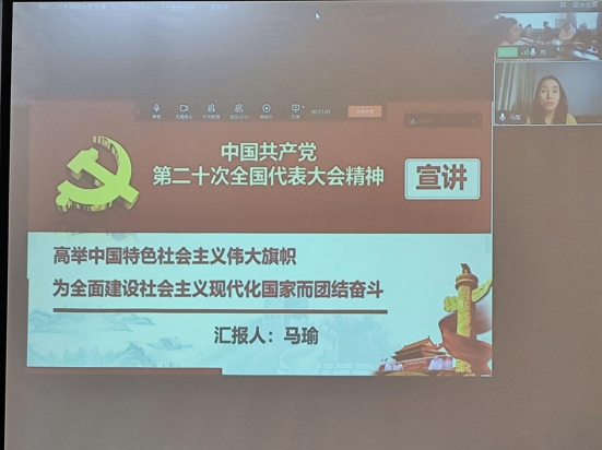 学习会上,马瑜用生动的语言、鲜活的事例、真切的感受,讲述了她参加党的二十大期间的所见、所闻、所感,围绕如何完整准确学习贯彻党的二十大精神进行了系统阐释和深入解读。会上,她还播放了她参会精彩瞬间短视频,让在场的师生党员们直观地感受到党的二十大召开盛况及党代表的“第一视角”。最后,马瑜寄语公司老员工,青年强,则国家强,青年老员工要勤于学习、刻苦磨砺、增强本领、不负芳华,做新时代中国特色社会主义的建设者和可靠接班人。