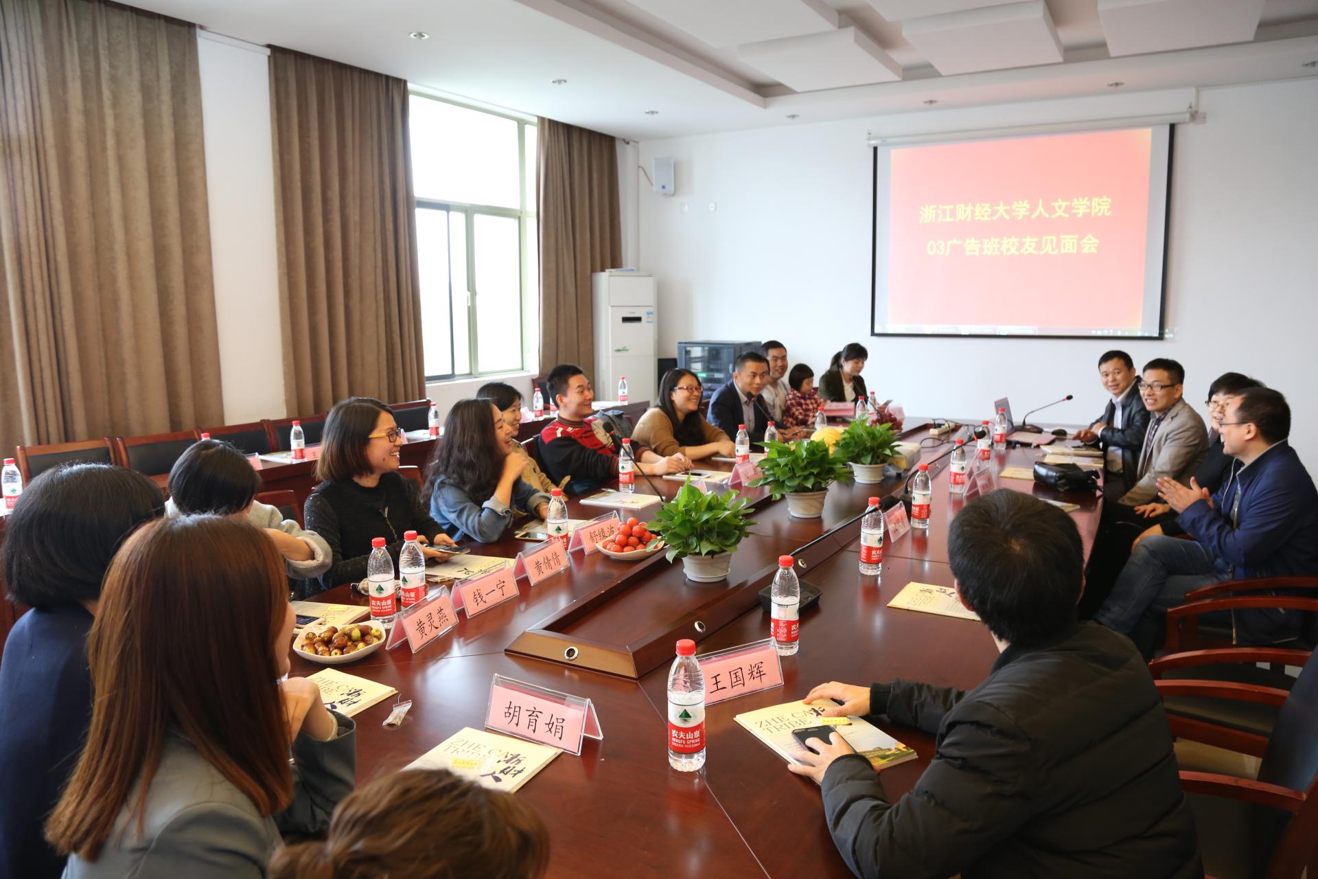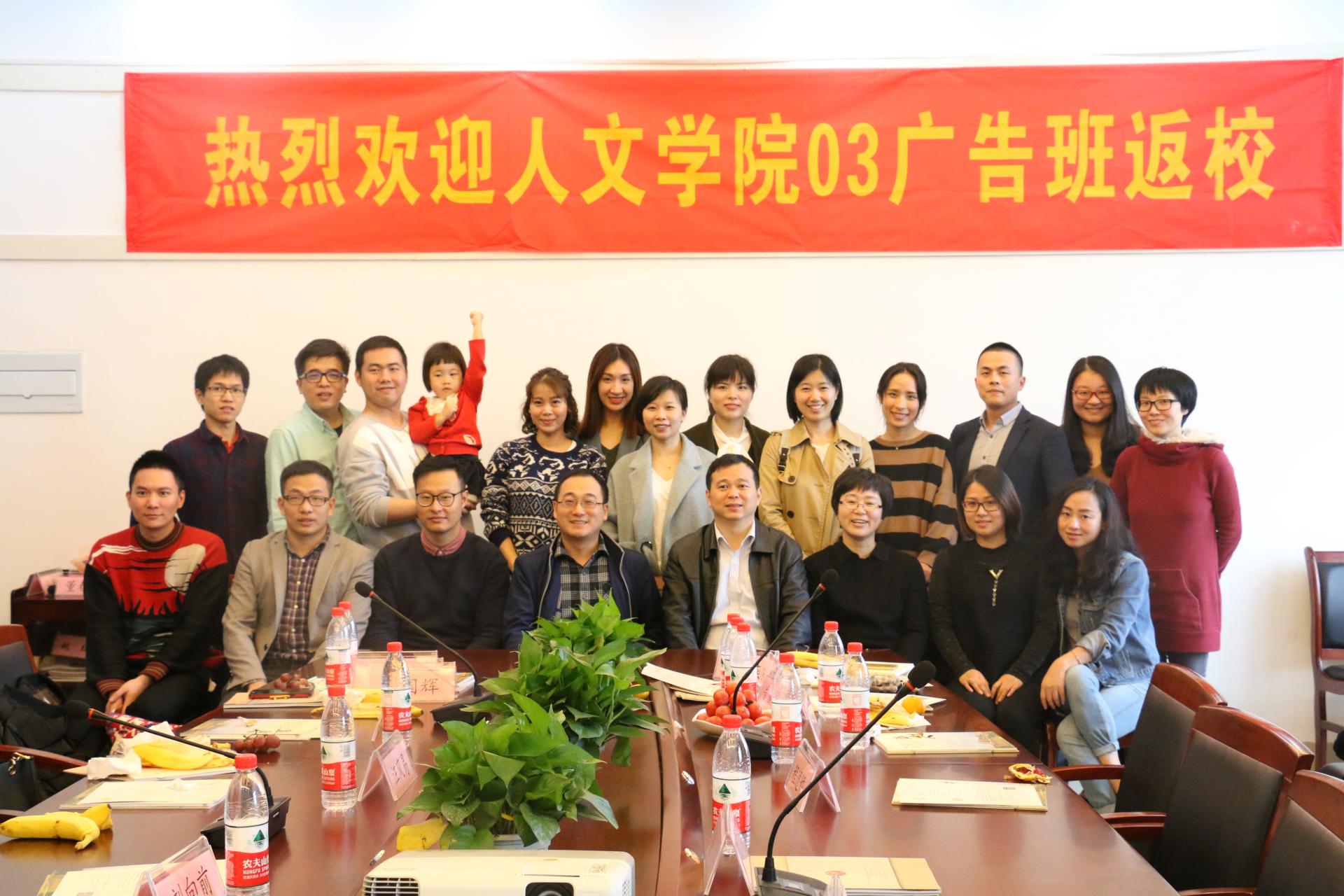 10月29日下午,意昂203广告班员工回母校聚会,并在公司楼404会议室召开座谈会,员工和在校师生齐聚一堂,共叙师生情谊,齐愿母校繁荣。03广告班的原带班辅导员、现数科公司党委副书记刘向前和现员工处干部汪风易特邀出席,公司党委副书记吴玻、数字媒体艺术系系主任王文奇、员工联络员章立峰和03级广告班员工参加。
