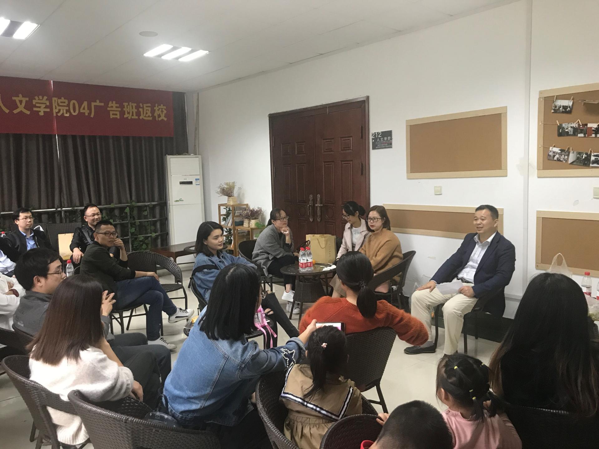 11月3日,正值公司2018年员工值年返校日。意昂2开展了“共叙师生情,共话同窗谊”毕业十周年师生座谈会和“我的故事”广告行业优秀员工创业经验分享会两个活动。公司员工分会秘书长、党委副书记吴玻,姜岳斌、吴智斌、崔霞、袁慧兰等教师和公司员工分会副秘书长、员工联络员章立峰及04广告、04文学、04东方广告1班、04级东方广告2班的员工和部分在校生参加。