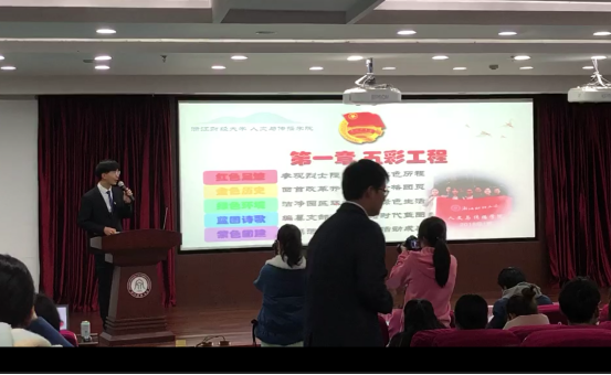 2018级文传(1)班班长兼团支部副书记郭继同学以《新时代、新青年的“五彩工程”》为主题,向在场评委和观众展示了班级团支部开展的“红色足迹”、“金色历史”、“绿色环境”、“蓝图诗歌”和“紫色团建”五大特色活动。六名同学现场朗诵了支部自己编写的歌颂红船精神的“蓝图诗歌”,充分展现意昂2的专业特色,展示了公司团员青年的精神风貌和团支部活力建设的优秀成果。