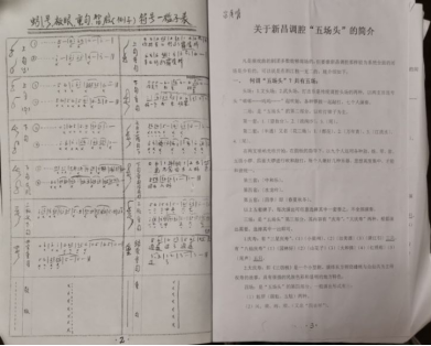 8月16日晚,毋丹老师拜访了两位国家级非遗传承人,调腔老艺术家吕月明和章华琴夫妇。吕老师是调腔剧团的乐师,他热情地展示了其编写的文稿和珍藏的资料,介绍了调腔曲牌音乐的魅力所在。访谈过程中,老师们时不时地分享了他们学习调腔的故事,流露出老传承人对调腔剧种的终身坚守,也更加坚定了团队成员传承调腔的决心。